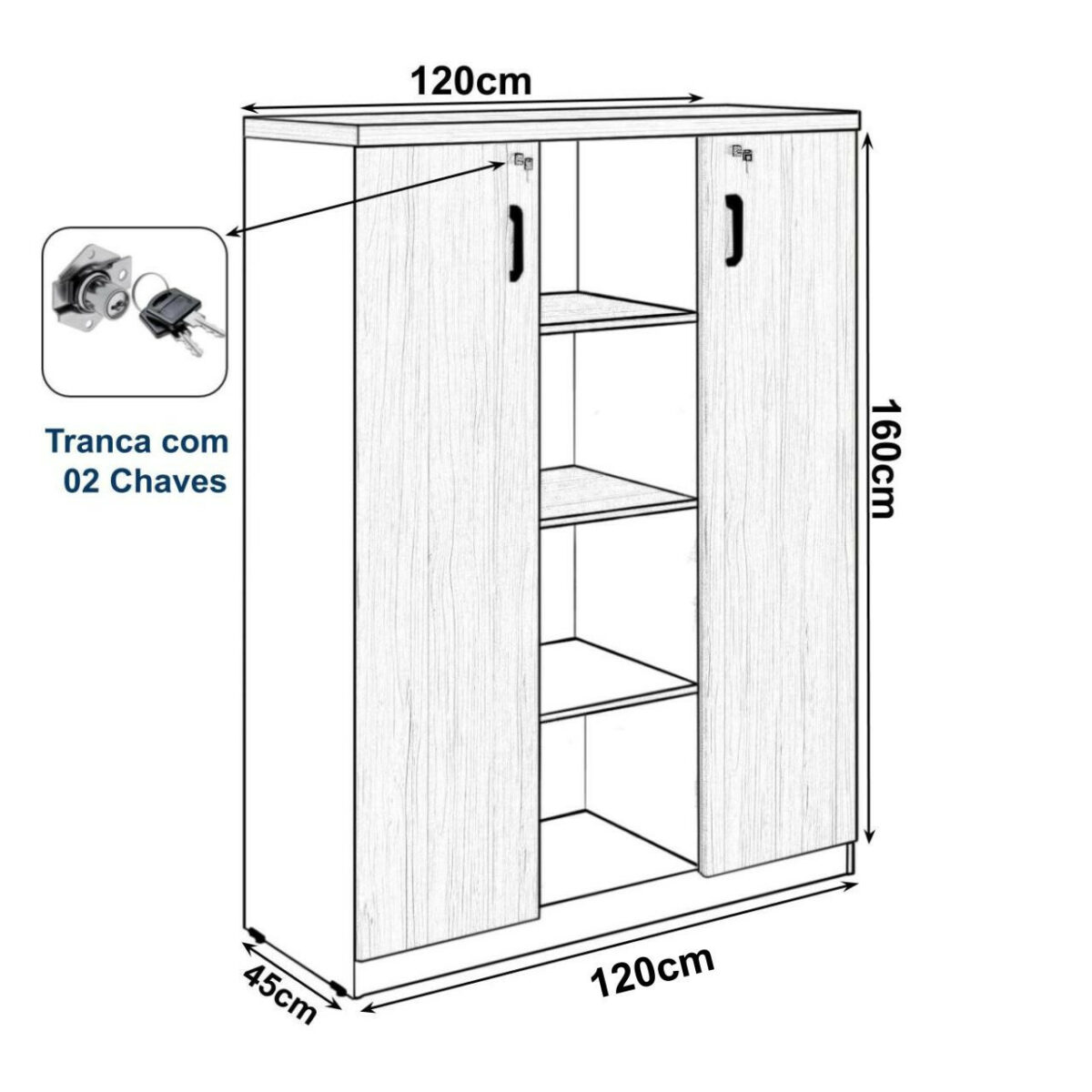 Outros Recursos / Mais informações: Sapatas Niveladoras de Altura / Tranca com 02 Chaves / 04 Bandejas