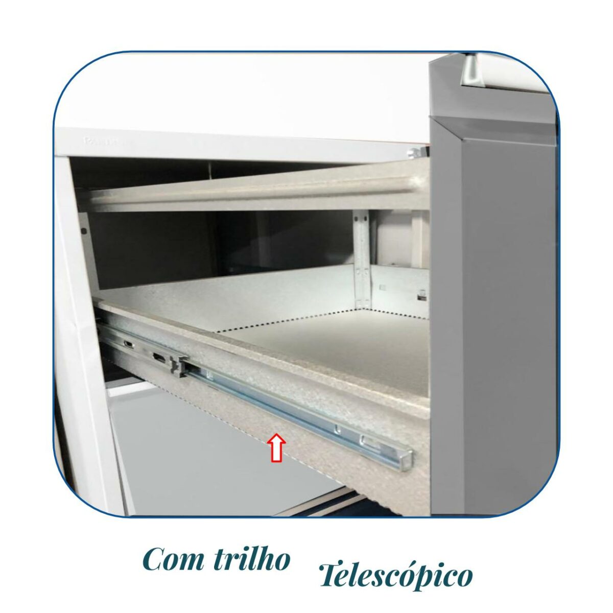 Gavetas: 04 Gavetas em Chapa de aço com reforço, Trilho Telescópico