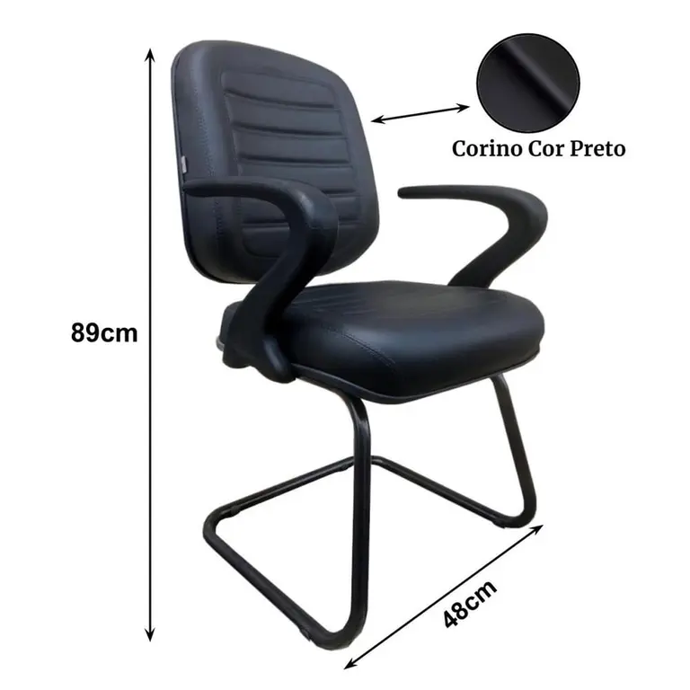 Cadeira DIRETOR COSTURADA Base em “S” Preta c/ BRAÇO “7” – Pollo Móveis – 30305