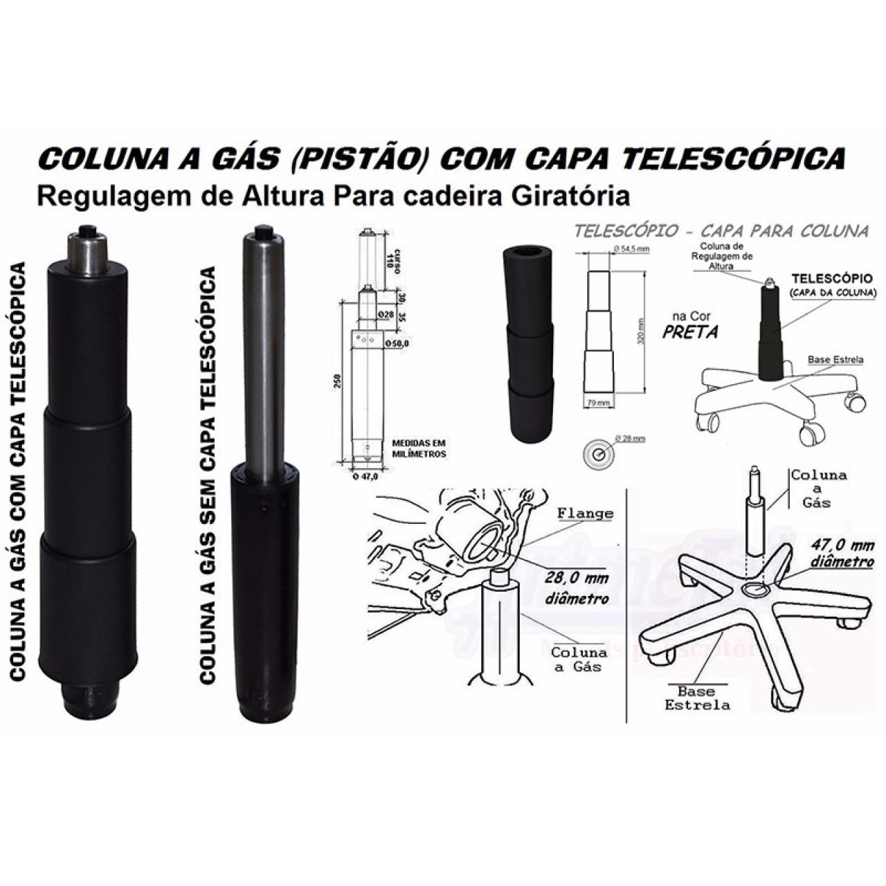 Material da Base: Pistão à Gás / Aranha de Aço cor Preto