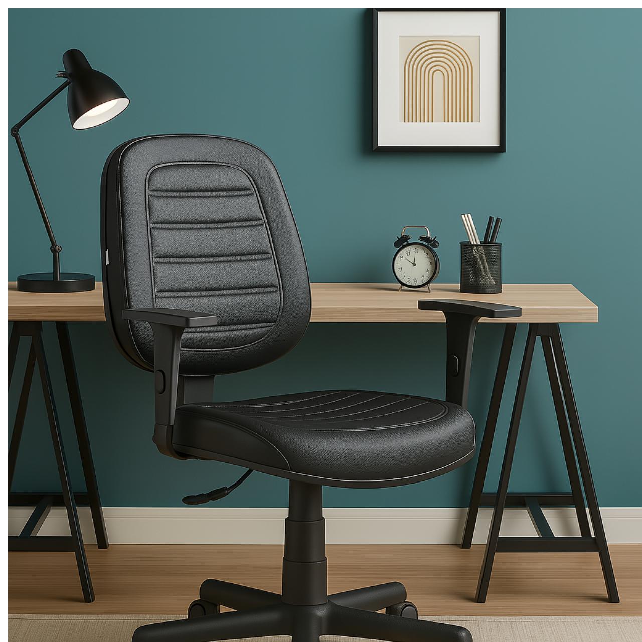 Cadeira Giratória Diretorzinha com Braços Reguláveis – Corino Preto – 32988