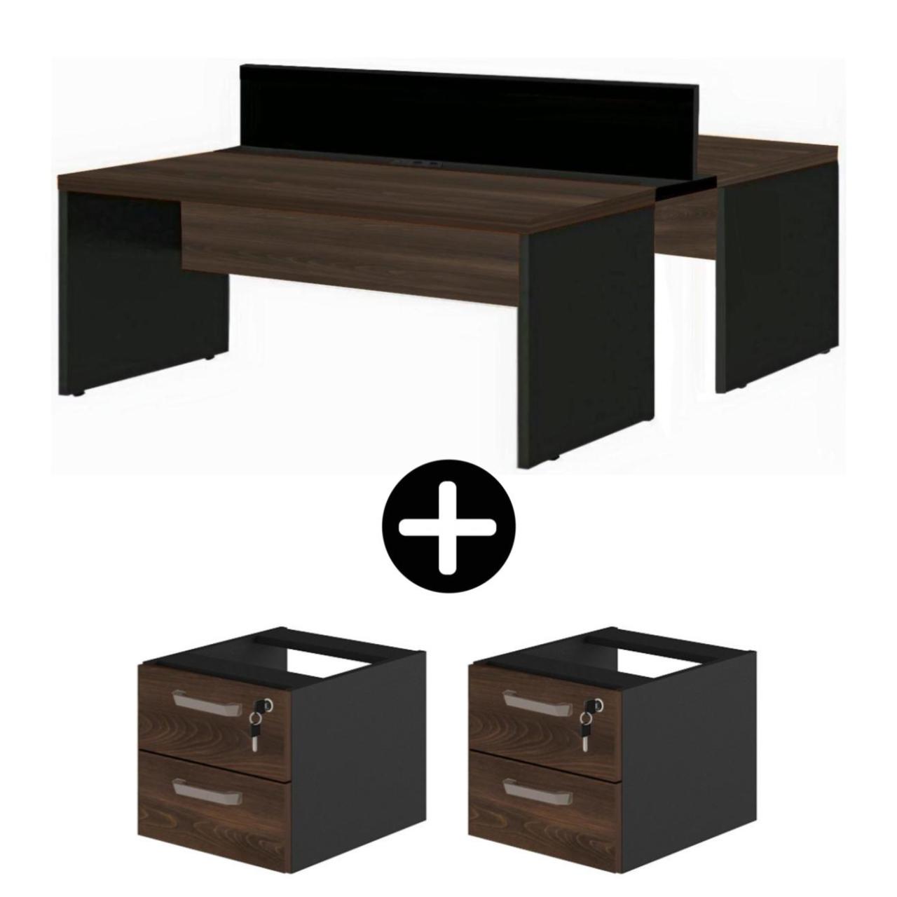 Estação de Trabalho Dupla 1,20×1,35m 02 Lugares c/ Gavetas c/ ponto de tomada MARSALA/PRETO – 63090