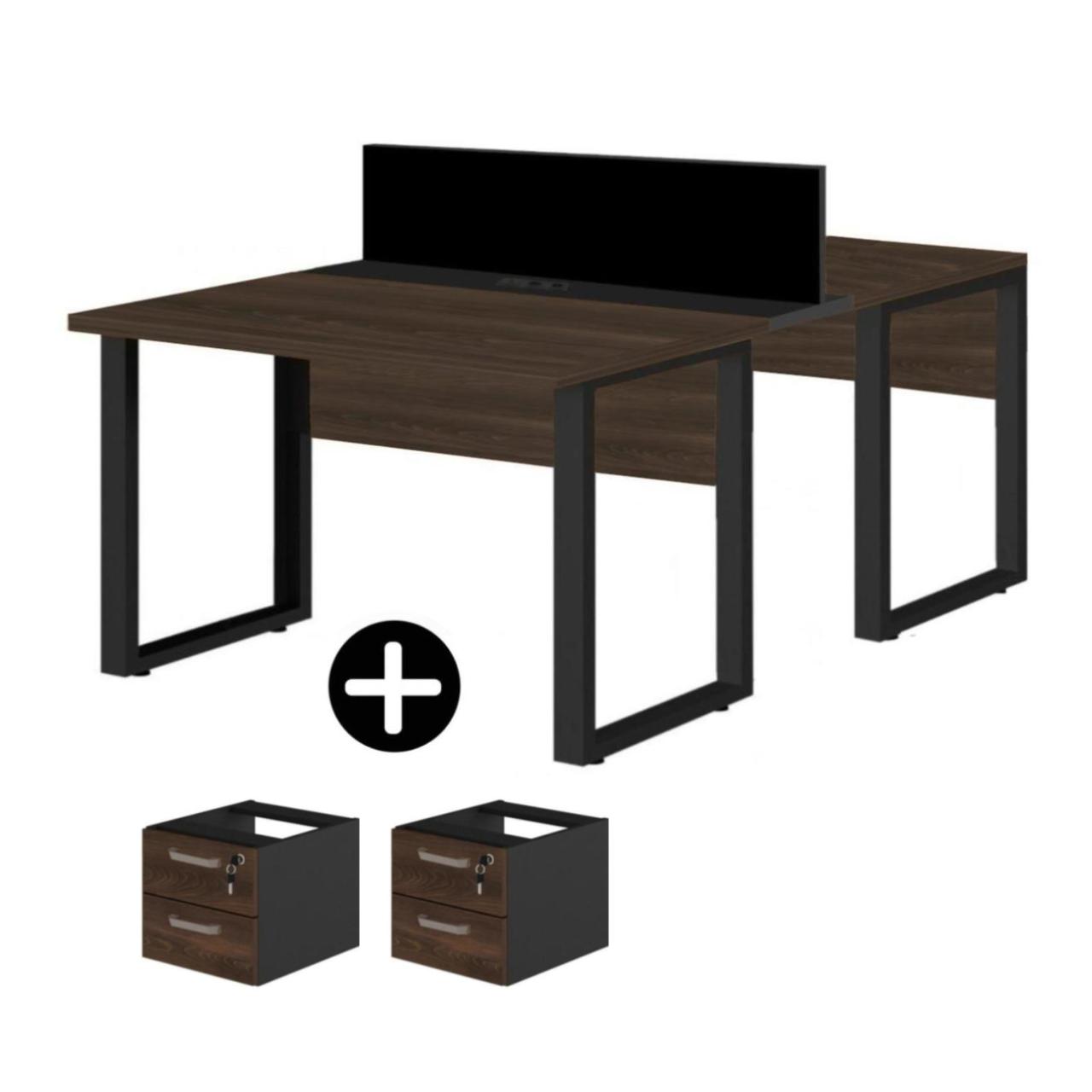Estação de Trabalho Dupla 1,20×1,35m 02 Lugares c/ Gavetas c/ ponto de tomada MARSALA/PRETO – 64001