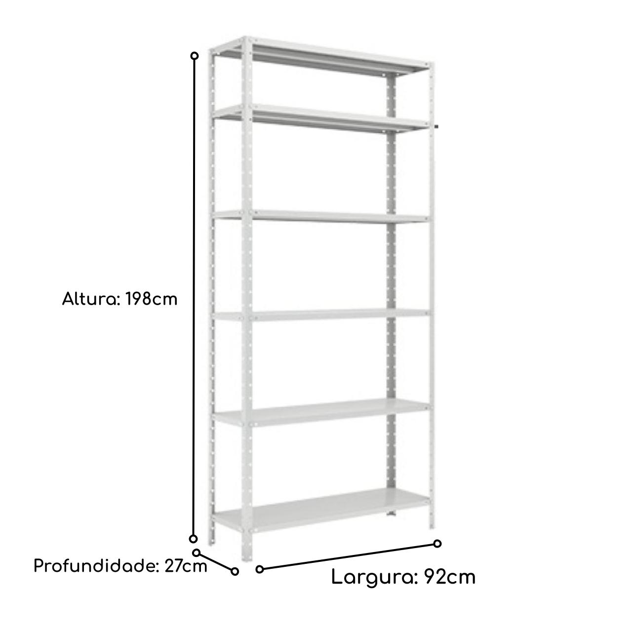 Estante de Aço com 06 Bandejas 27 cm (# 26/20) – 1,98×0,92×0,27m 16002