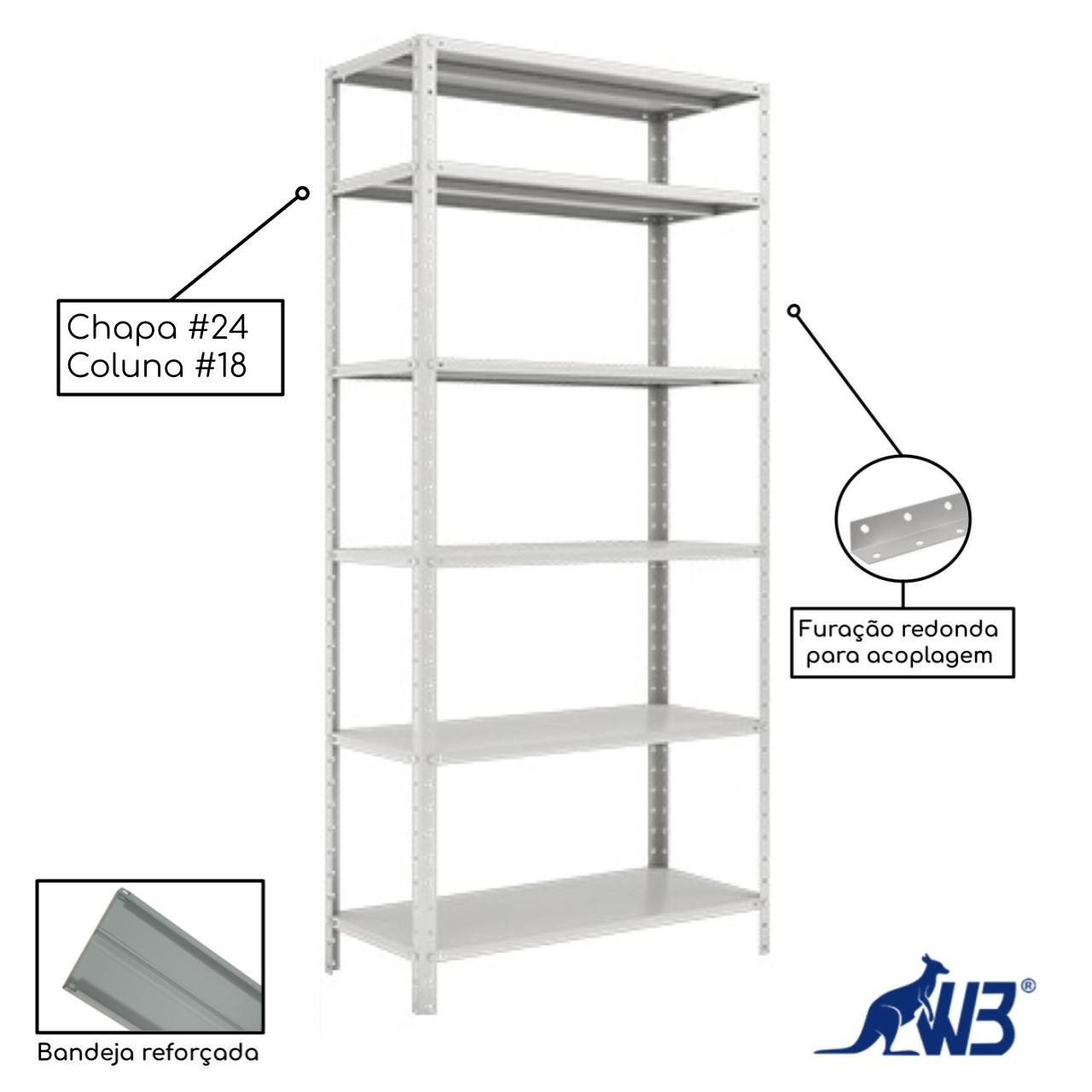 Estante de Aço com 06 Bandejas 40 cm (26/20) – 1,98×0,92×0,40m – SA – 16013