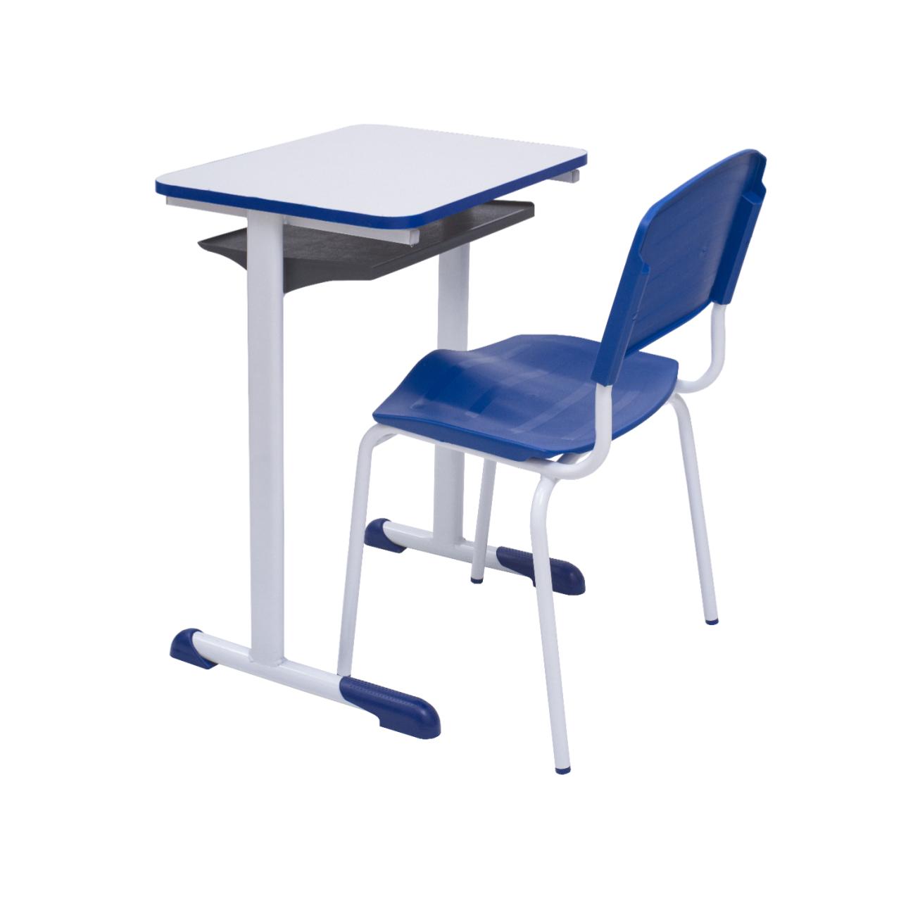 Kit Escolar Individual AZUL – (Mesa e Cadeira) – ADULTO – MADEIRA – COR AZUL – REALPLAST – 40095