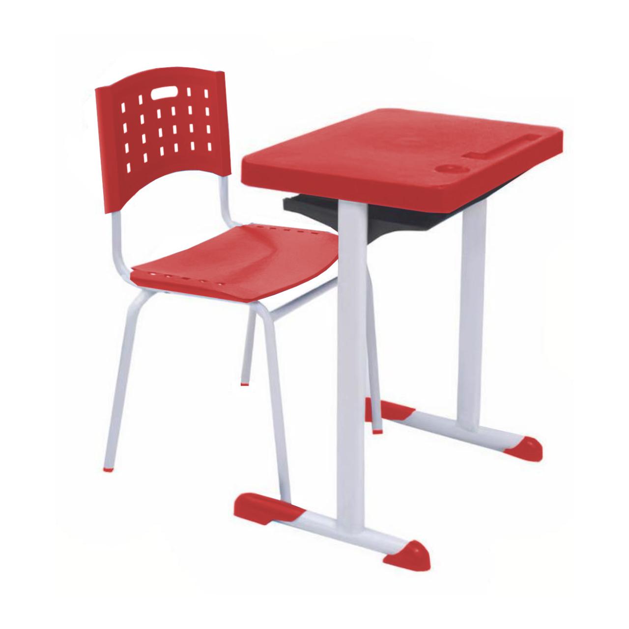 Kit Escolar Individual AZUL – (Mesa e Cadeira) – ADULTO – TAMPO PLÁSTICO – COR VERMELHO – REALPLAST – 54005
