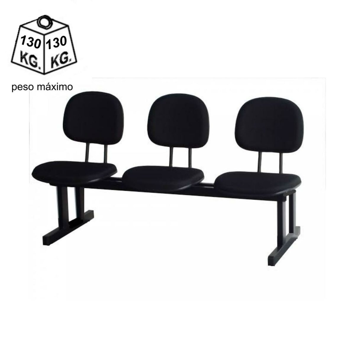 Longarina SECRETÁRIA 03 Lugares – Cor PRETA – Pollo Móveis – 33003