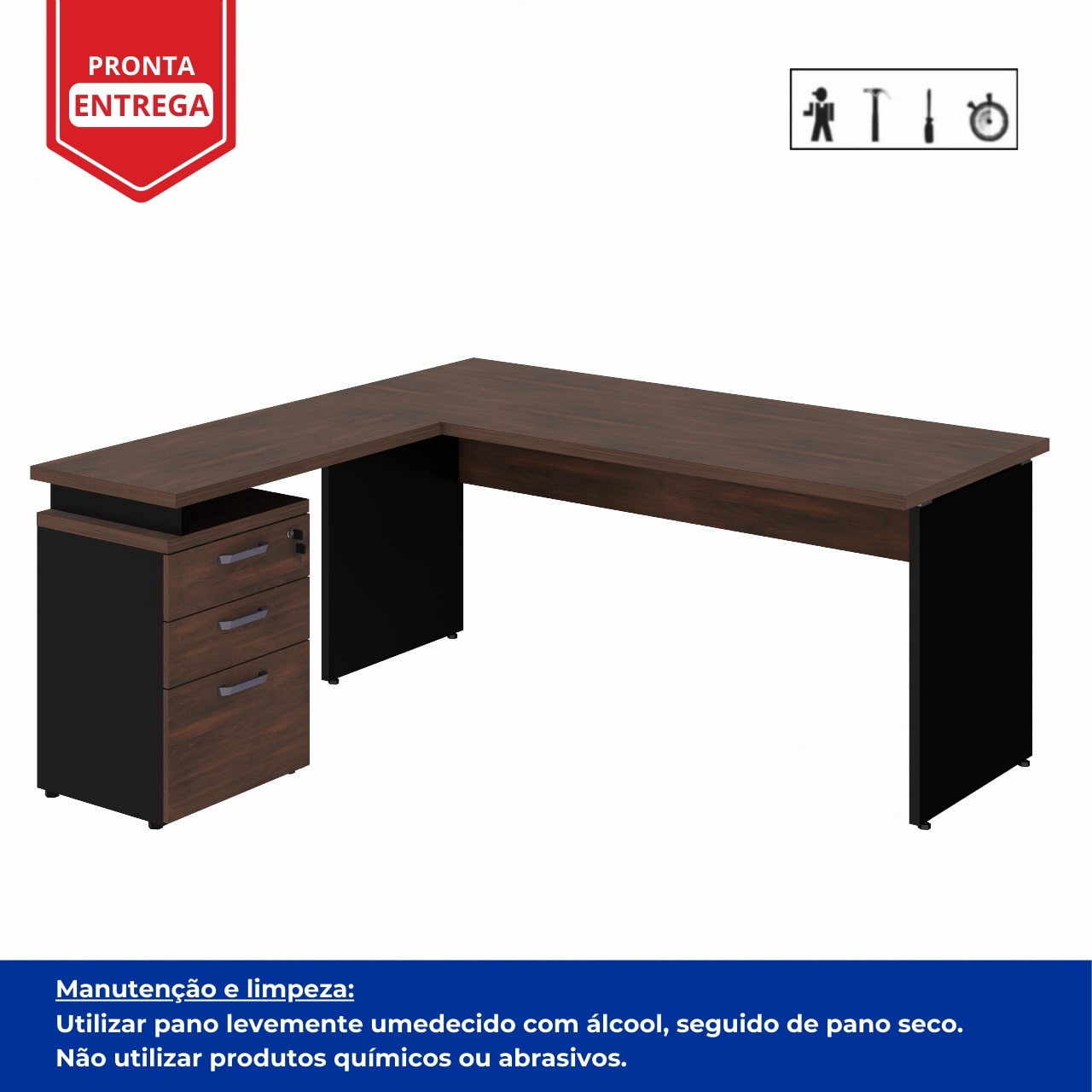Mesa Escritório em “L” c/ Gaveteiro 1,70×1,60m Marsala/Preto – 23481