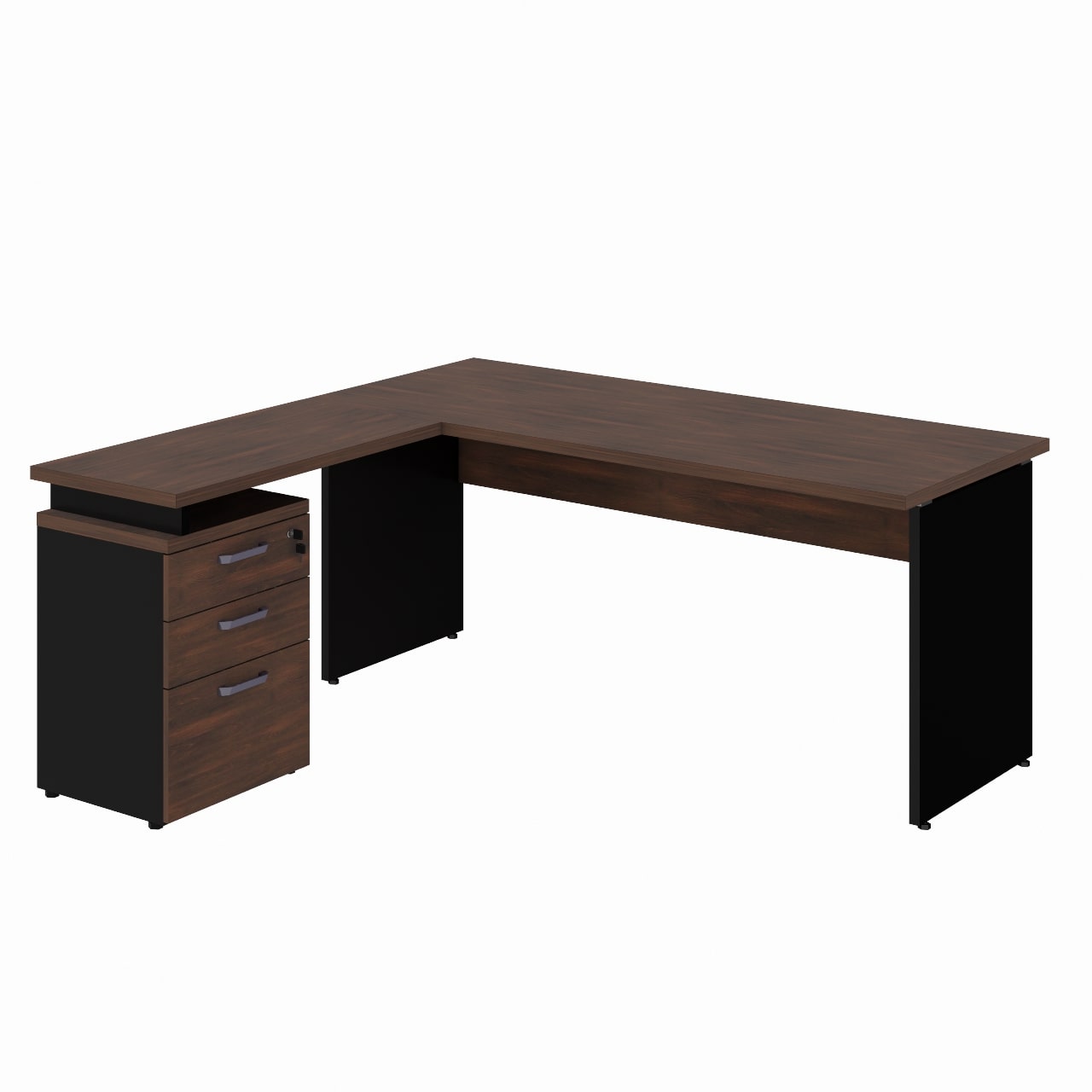 Mesa Escritório em “L” c/ Gaveteiro 1,70×1,90m Marsala/Preto – 23481