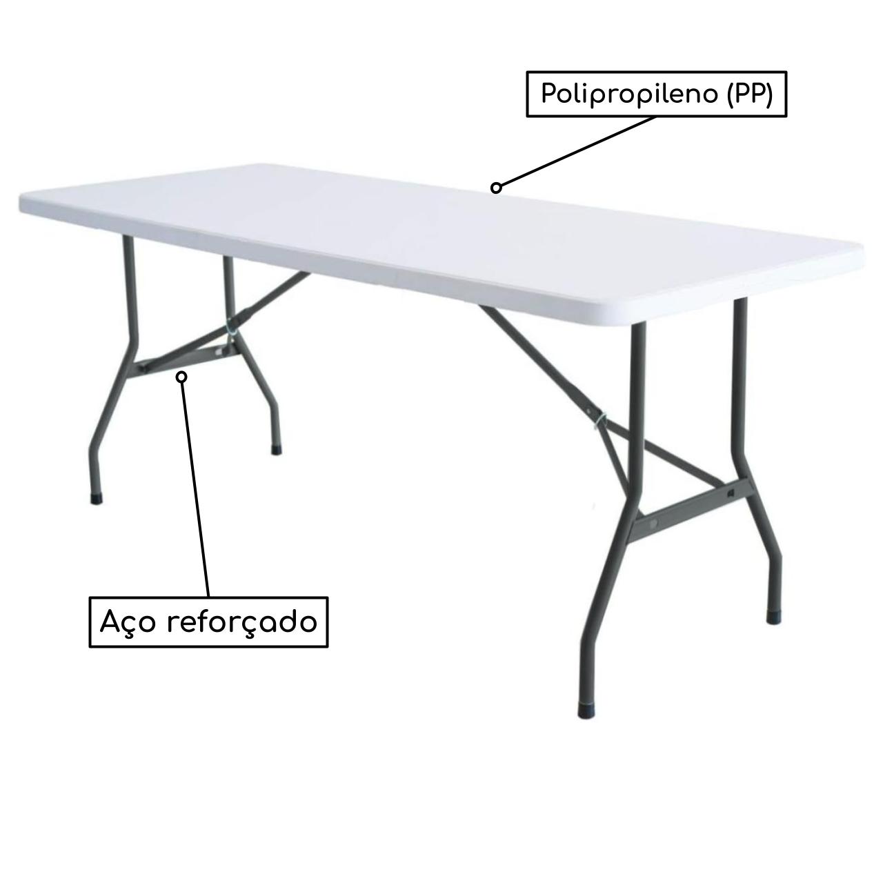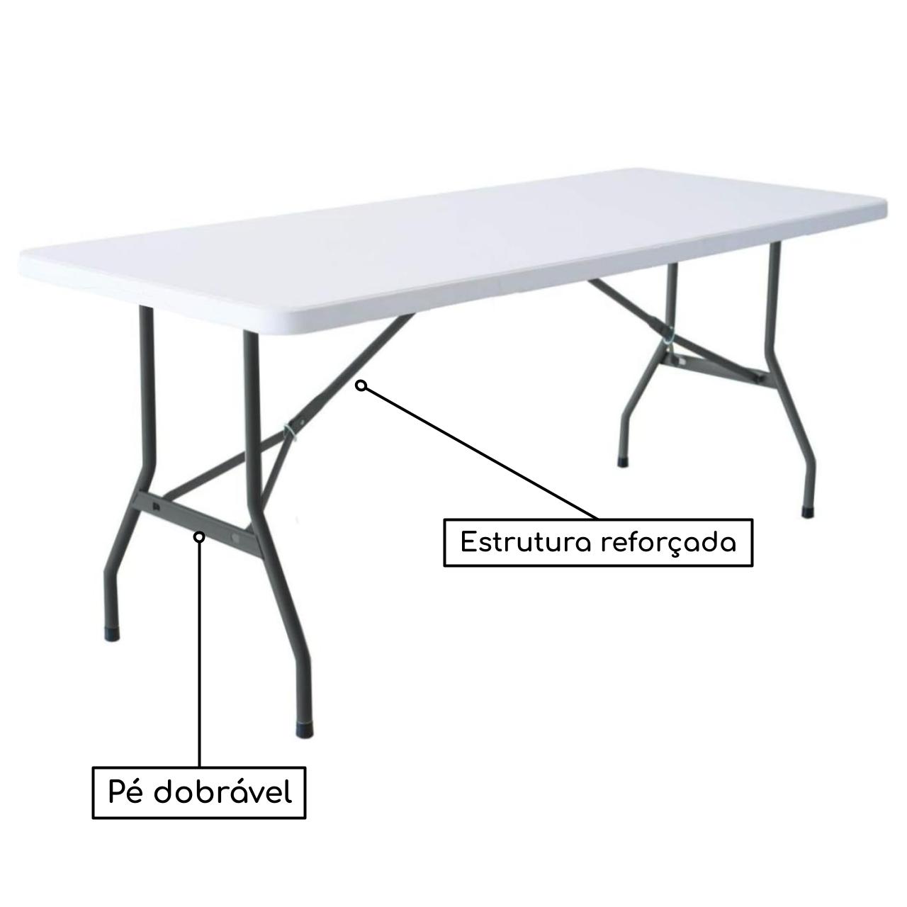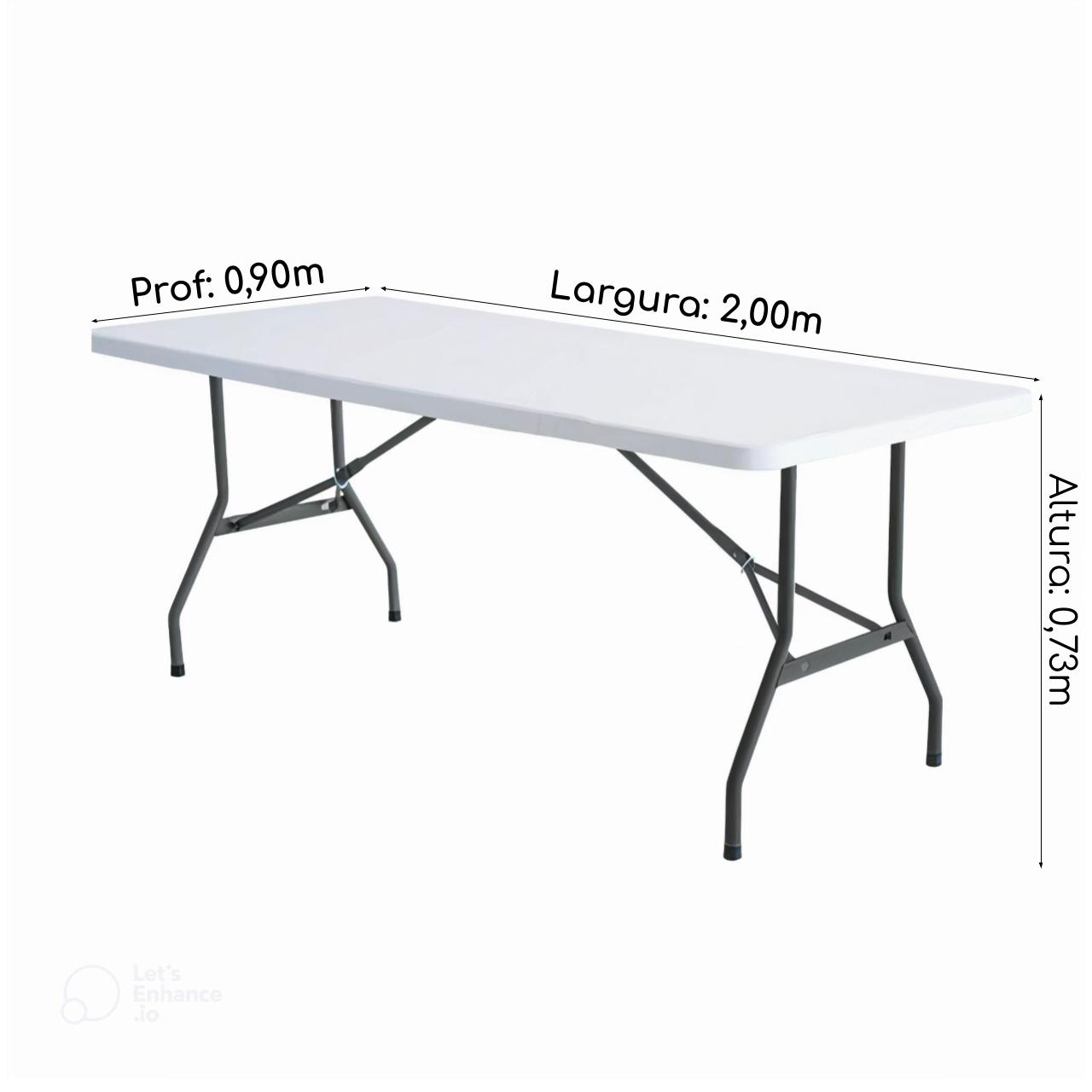 Produto: Mesa Refeitório MASTER FIT C/ Pés Dobráveis 2,00×0,90×0,75m – Tampo em PP BRANCO – 50071