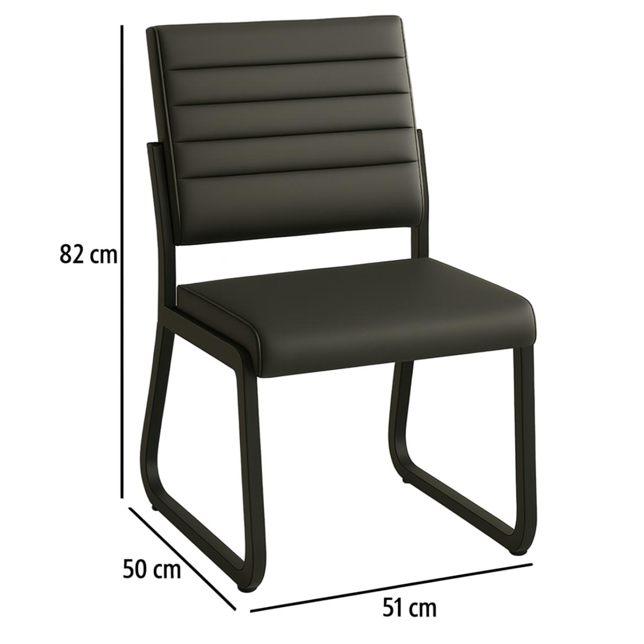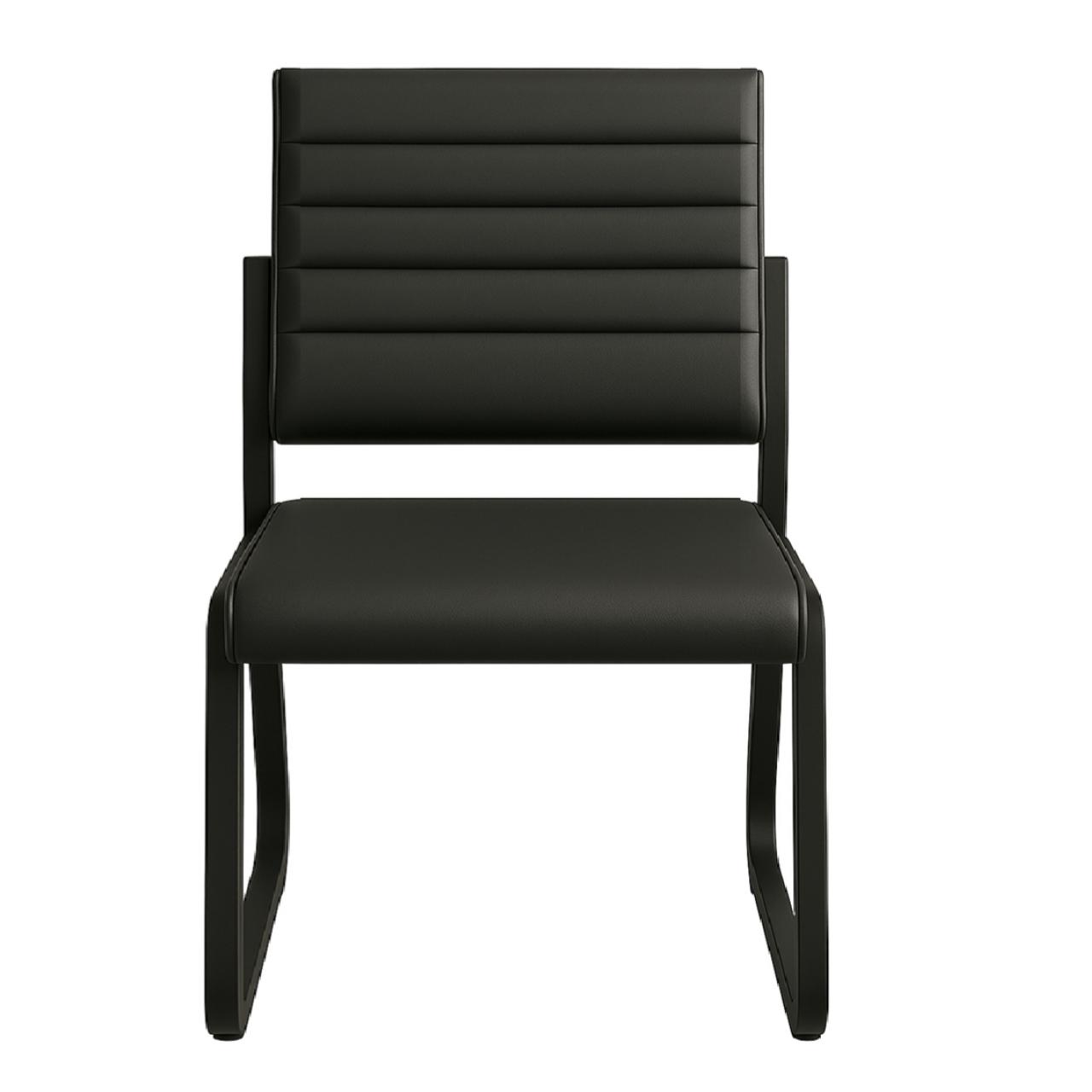A cadeira apresenta design moderno e minimalista, ideal para ambientes corporativos, recepção, salas de reunião ou uso residencial sofisticado. O estofado com linhas horizontais no encosto confere elegância e leveza visual, além de transmitir uma sensação de organização e sofisticação.