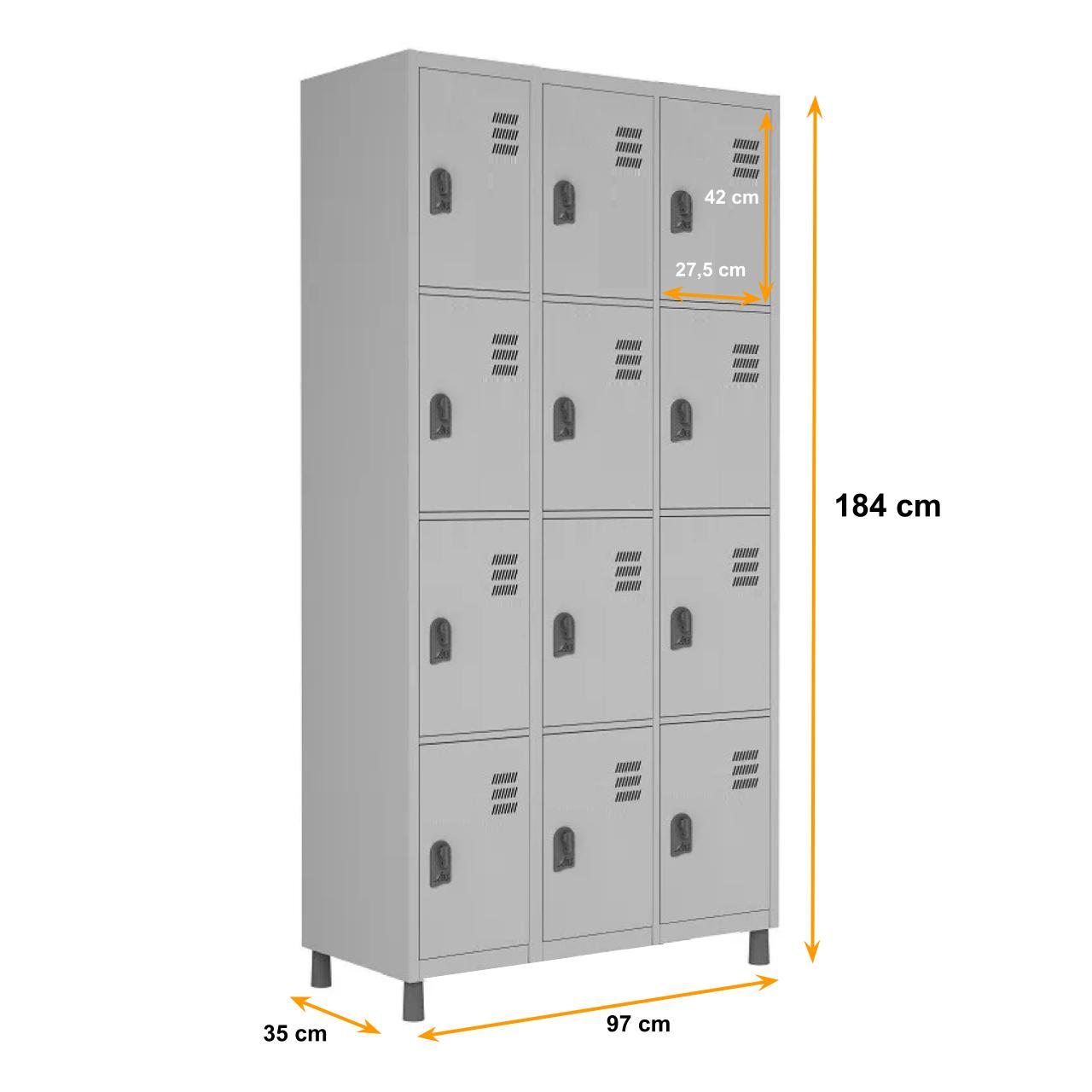 Roupeiro de Aço PAM c/ 12 Portas PEQUENAS – 1,80×1,03×0,32m – CZ/CZ – PANDIN – 74207